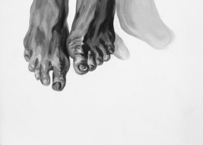 I am interested in finding my inner self and listening to my inner voice through visual art making. For this artistic journey, I have been working on images of my feet since 1995. Interested in self-image as a path to creativity, I painted and photographed my face, my body, my hands, and my feet. Then, my feet became my focus as a representation of my inner self. And I have also been trying hard to visually show the interaction between me and the world I live in. I relate the subject of feet to the ground where we stand. We stand balanced thanks to the support of our feet. Physically, we can control our body and not fall down using our feet. While I live my everyday life, I sometimes feel like falling down—failing in living my life. Thus, my feet, on which I stand on the ground, are a tool for living and feeling all right. I paint my feet, various features of them—relaxing, standing large, small, and so on. I think I am searching for the core of my life by working on the visual image of my feet.