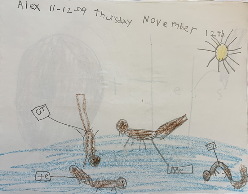 Figure 4. Drawing for Otter Tales (Age 6). Pencil and colored pencil drawings.9”x12” each piece. Photo: Borim Song.