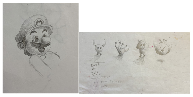 Figure 5. Drawing Trade: Pokémon and Super Mario Brothers Drawings Created by My Son and Me. Pencil and marker drawings.9”x12” each piece. Photo: Borim Song.