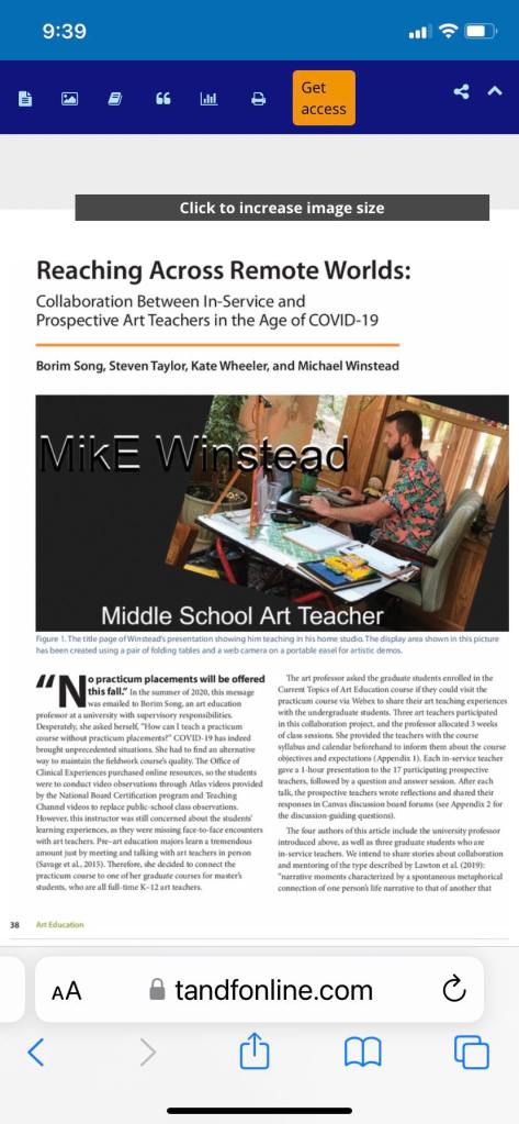 Lim, M., Song, B., & Chang, E. (2023, January). Exploring contemporary Chinese artists in K-12 classrooms. 21st Hawaii International Conference on Education, Honolulu, Hawaii.
